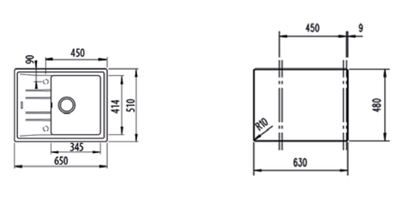 • 1 Spülbecken und Abtropffläche, reversibel