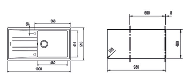 - Arbeitsplattenausschnitt LxB ca. 980x480 mm