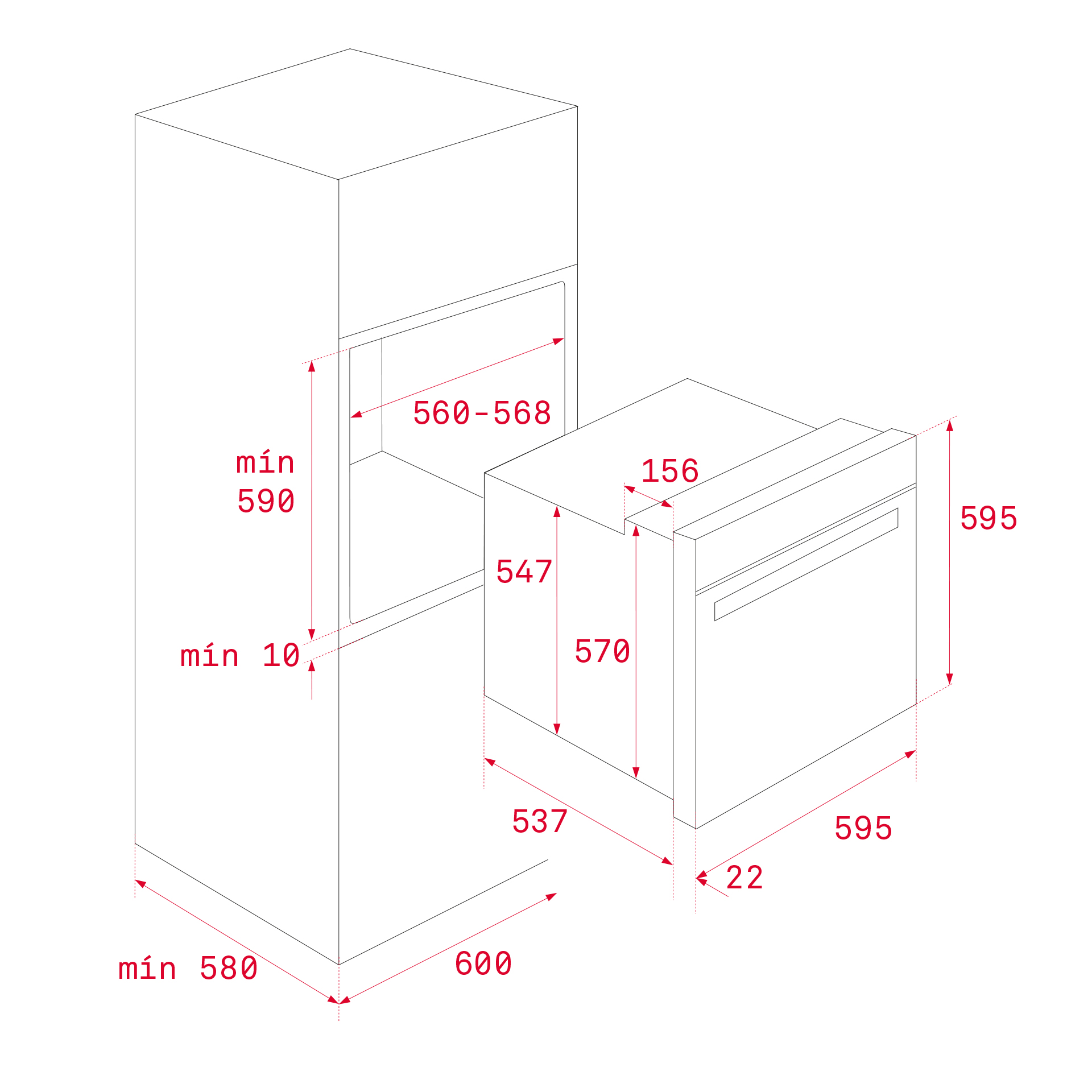 - Nischenmaße: 590 x 560-568 x 580 mm (H x B x T)