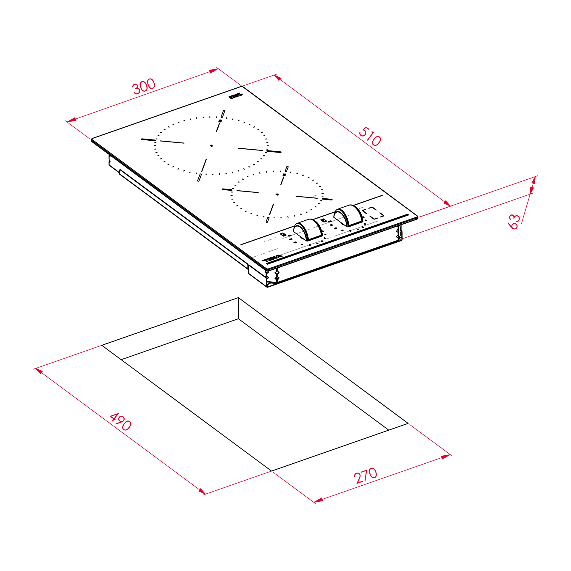 HiLight-Kochfeld, 30cm, 2 Kochzonen, C-Schliff