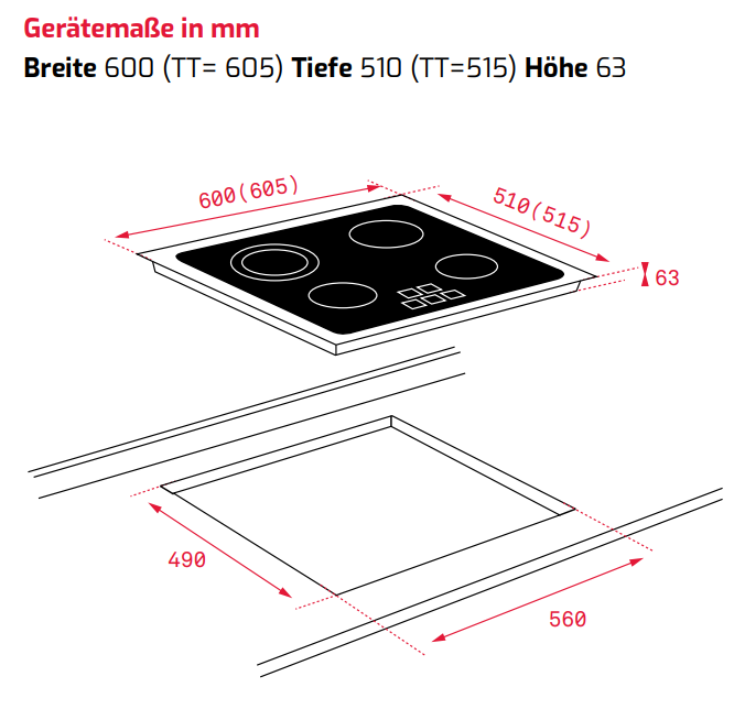 - Breite 600 x Tiefe 510 x Höhe 63