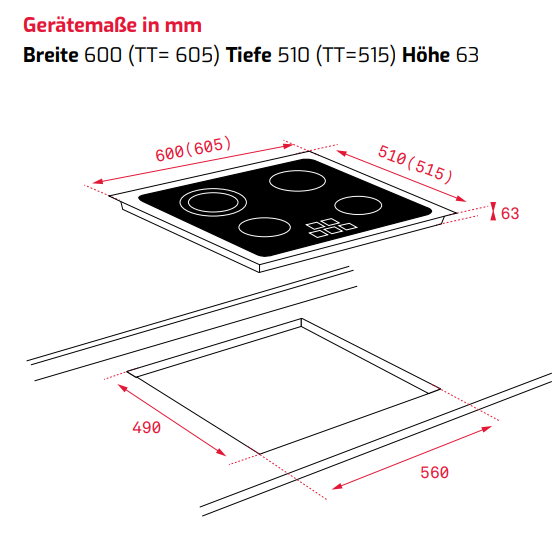 - Breite 600 (TT= 605) Tiefe 510 (TT=515) Höhe 63