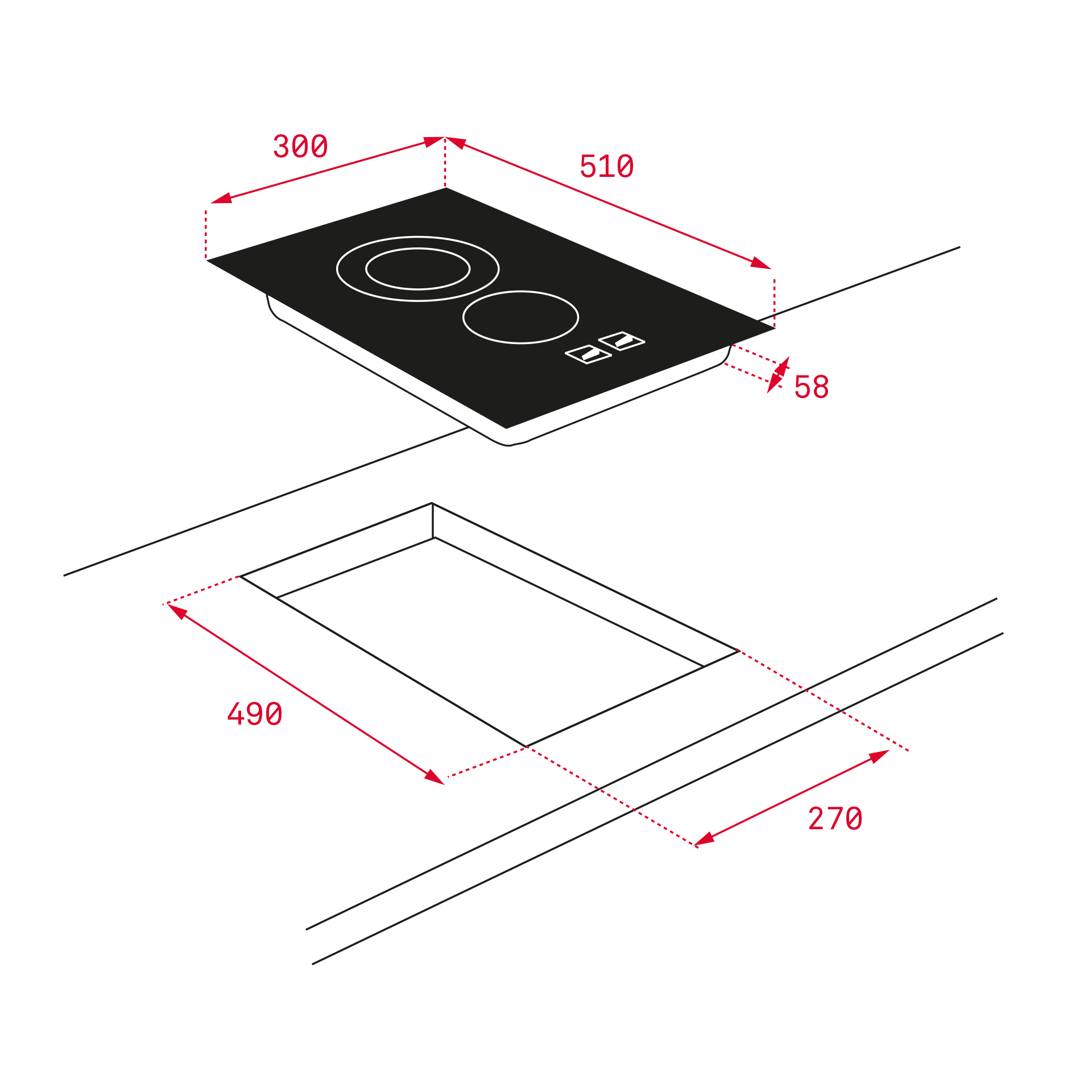 HiLight-Kochfeld, 30cm, 2 Kochzonen, Facette