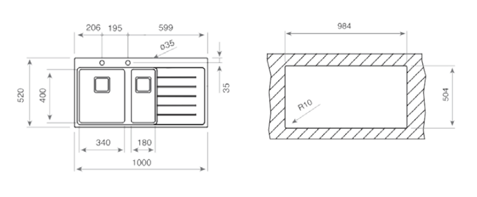 - Beckengröße LxBxT ca. 340x400x200 mm und 180x400x140 mm