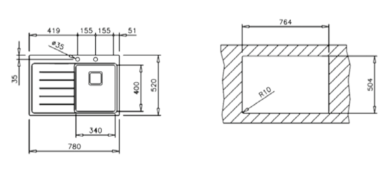 - Beckengröße LxBxT ca. 340x400x200 mm