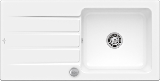 Villeroy & Boch Timeline 60Keramikspüle inklusive Ablaufgarnitur mit Excenterbetätigung oder mit Handbetätigung 1000 x 510 mm ab 60 cm Unterschrank einbaugeeignet reversibel aufliegender Einbau im Lieferumfang enthalten: Ablaufgarnitur und die Abdeckkappe für Einzeldrehgriff in Edelstahl-Optik Lochbohrung: bitte separat unter Zubehör bestellen. Durchmesser: ca. 35 mmBei der Bestellung bitte die entspr. Lochbohrung-Art.Nr. angeben: entspricht der Position (= Ziffer 1 - 4) - siehe technische Zeichnung! erhältlich in diversen Farben - siehe unter Downloads ! Das reinste Vergnügen: Keramikspülen von Villeroy & Boch:Hygiene: Keramik ist geschmacks- und geruchsneutral.Reinigung: Keramik benötigt wenig Kraft- und Zeitaufwand.Langlebigkeit: Keramik ist stoß-, schlag- und kratzfest.Robustheit: Keramik ist hitze- und kältebeständig. Ceramicplus: Keramik ist ein hochmoderner Werkstoff und immer häufiger auch in der Küche zu finden. Von Villeroy&Boch exklusiv mit der Innovation Ceramicplus veredelt, wird sie zur besonderen Küchenkeramik, die sauberer bleibt. Schmutz und Wasser finden kaum noch Haftpunkte, fließen sofort ab Einfaches Entfernen von Kalkrückständen und hartnäckigen Flecken wie Tee, Rote Beete oder Rotwein Einfachere und schnellere Reinigung, weniger Verbrauch von Reinigungsmitteln Sie benötigen nur noch ca. 10% der bisherigen Reinigungszeit und der bisherigen Reinigungsmittel.