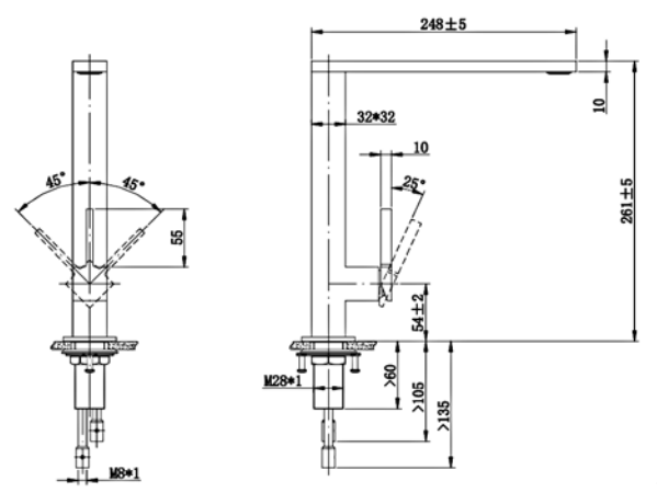 - Mischwinkel des Hebel: 90°