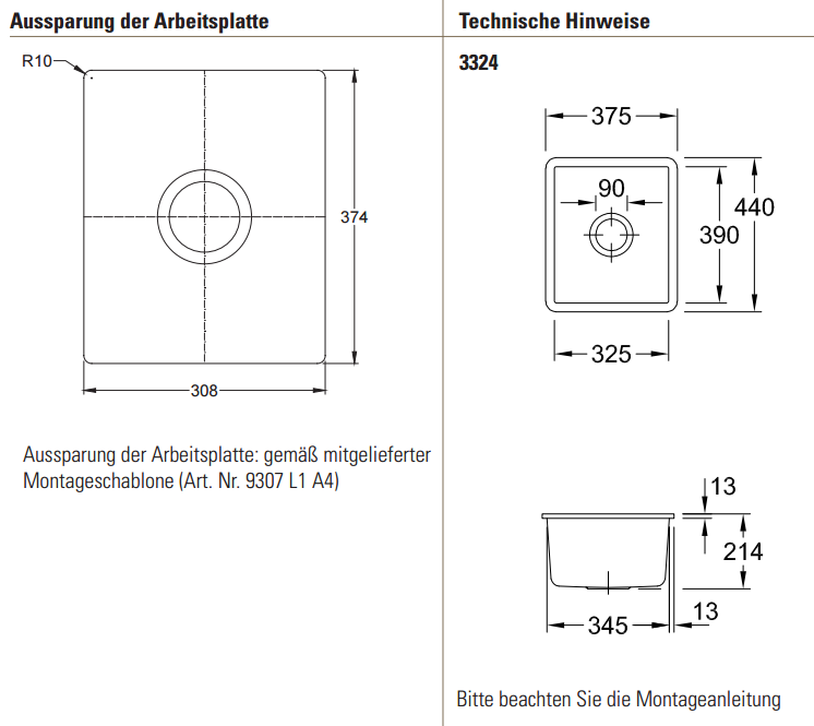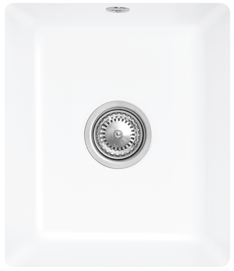 Unterbau-Keramikspüle inklusive Ablaufgarnitur mit Excenterbetätigung