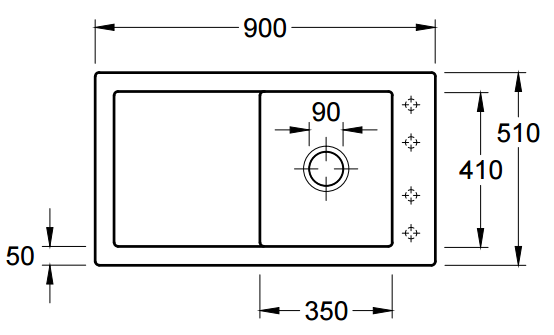- Lochbohrung: bitte separat unter Zubehör bestellen.