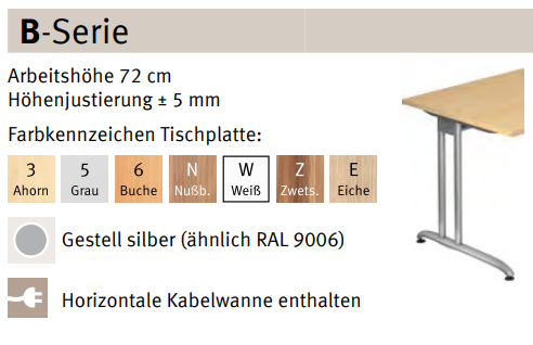 - Arbeitshöhe 72 cm