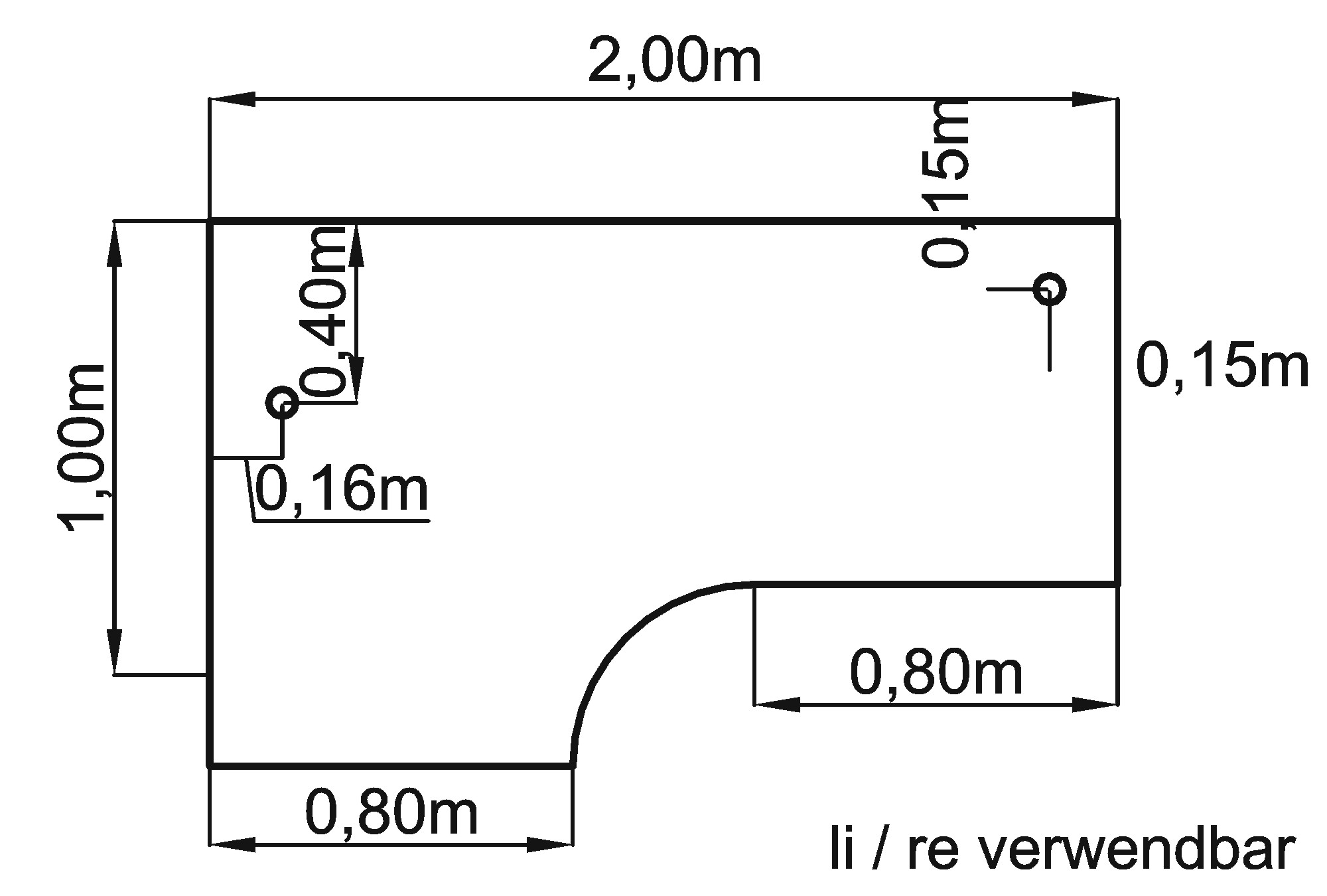 - Platte: Dekor nach Wahl, 25 mm dick, 2 mm ABS-Kante