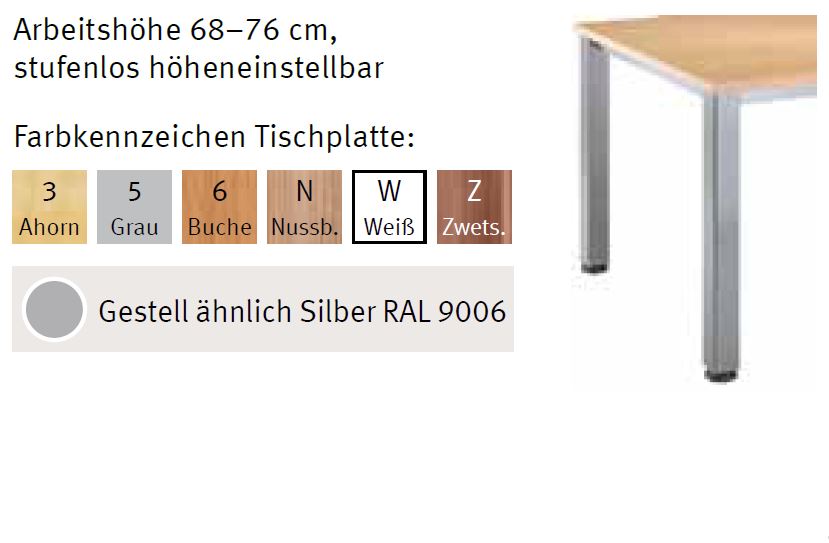 - 4-Fuß-Gestell in silber (ähnlich RAL 9006)