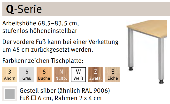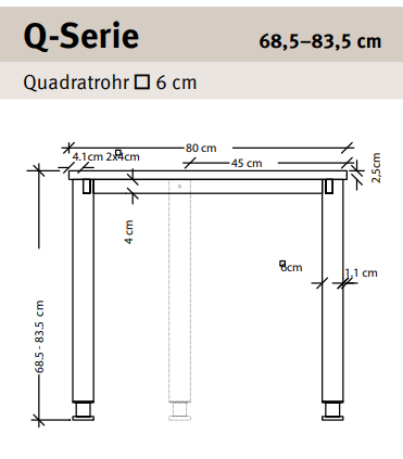 - 4-Fuß-Gestell in silber (ähnlich RAL 9006)