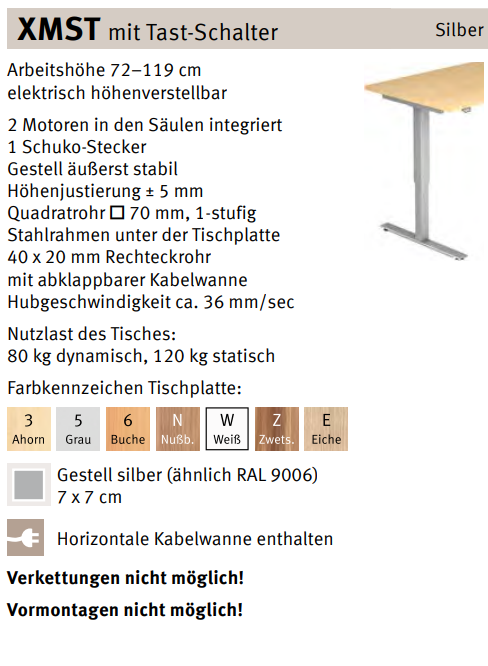 - Tragkraft 80 kg dynamisch, 120 kg statisch