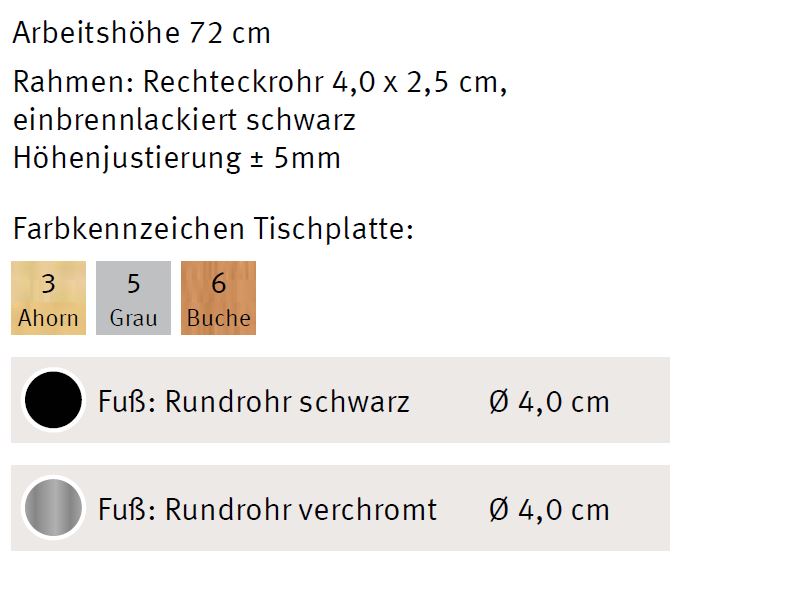- Vier-Fuß-Gestell schwarz oder chrom,Rundrohr 4 cm