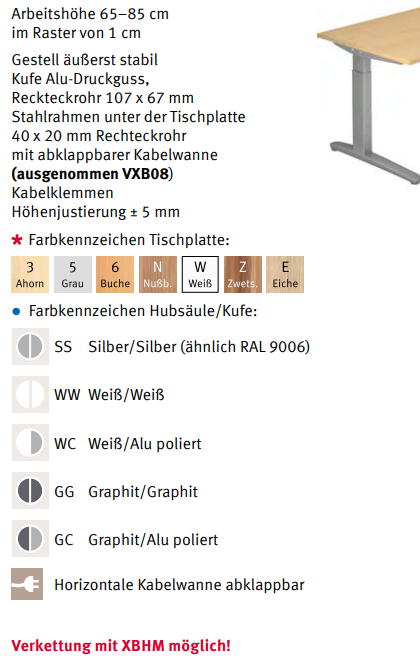 - mit abklappbarer Kabelwanne (ausgenommen VXB08)