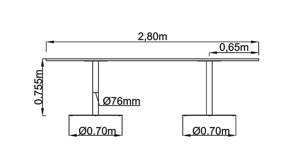 - Säule Ø 7,6 cm, Tellerfuß Ø 70,0 cm
