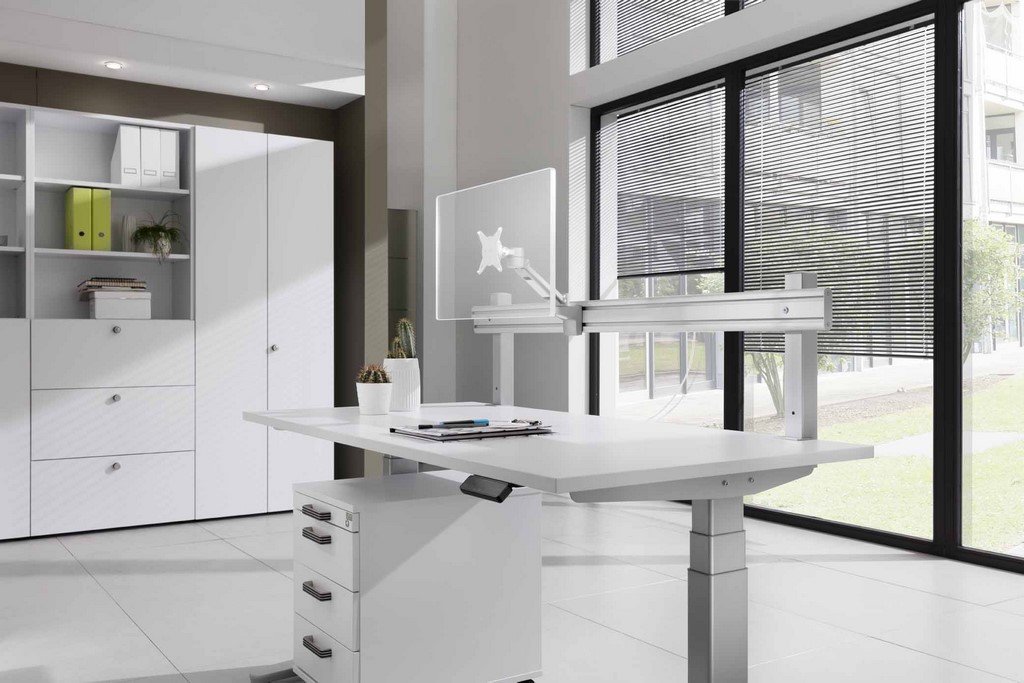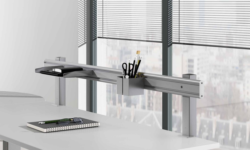 - zur Aufnahme von Bildschirm-Tragarmen oder Organisationsschalen