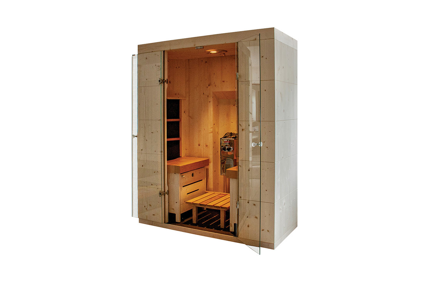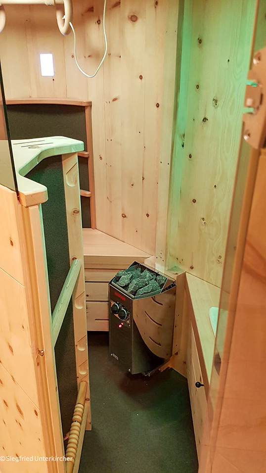 - erweiterte Kabinentiefe durch zusätzliche Seitenniesche für Soft-Saunaofen.