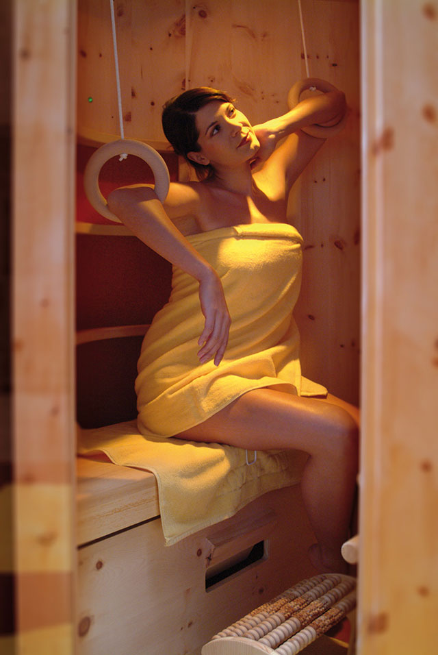 Diverse Relax- und Fitnessgeräte können in die Kabine integriert werden. Sanfte Gymnastik und Dehnübungen kombiniert mit dem hydrosoften Schwitzgenuss mit ganzheitlich verstärkter Wirkung. Je öfter Sie täglich Ihre Selbstheilungskräfte mobilisieren, umso mehr fühlen Sie, wie es Ihrer Haut, Ihren Gelenken und Ihren Muskeln gut tut. Für jede Sportart und für jedes Alter ein Hochgenuss für Vitalität, Gesundheit und Fitness.