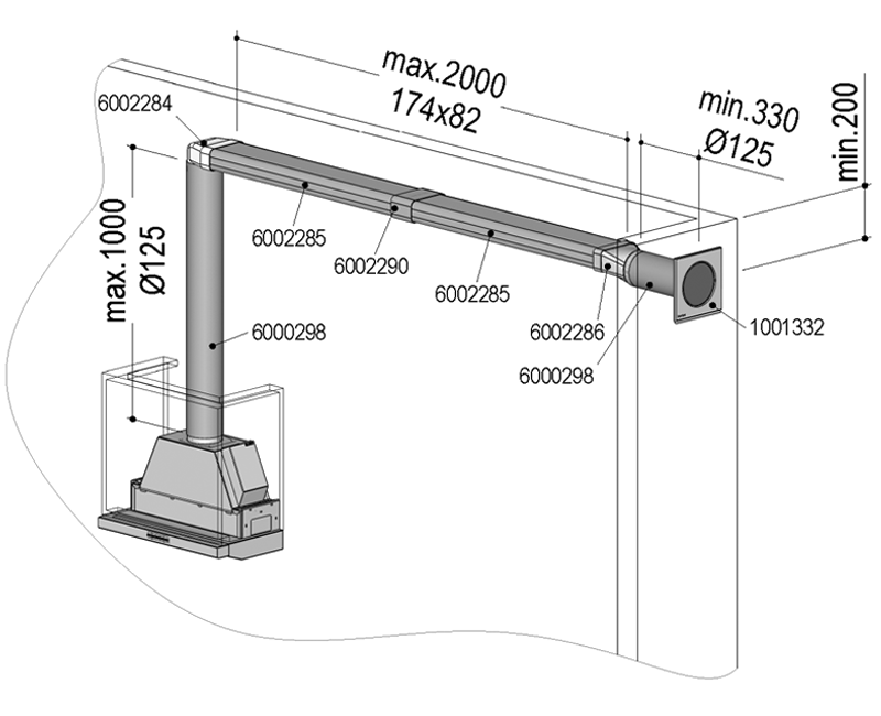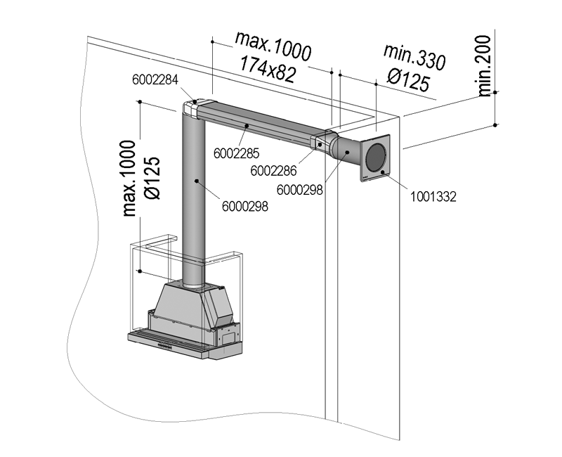 Mindesthöhe Schacht für Kombination Umluftfilter / Hybridfilter: 850 mm