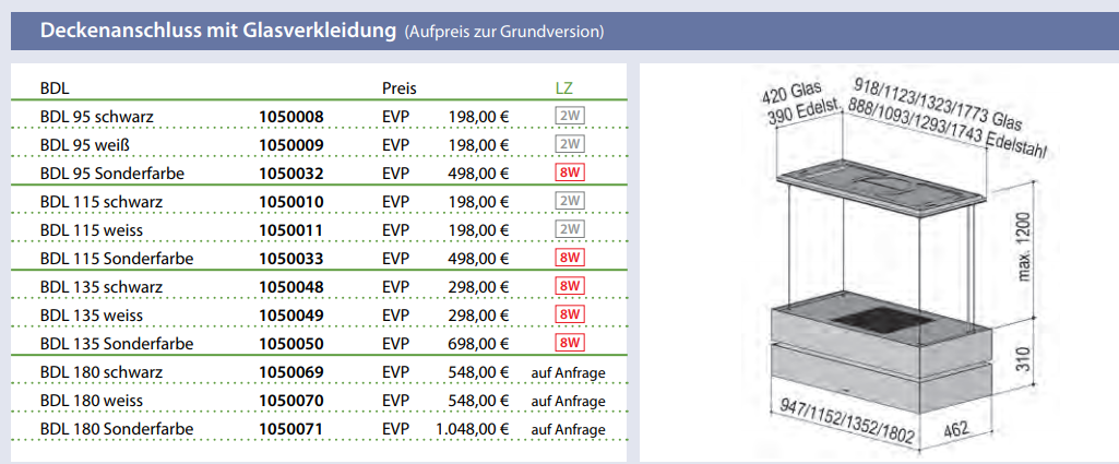 Downloads zu "berbel Deckenanschluss mit Glasverkleidung für SK und SKE BDL"