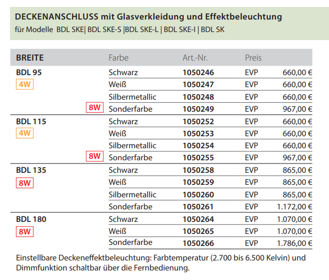 Downloads zu "berbel Deckenanschluss mit Glasverkleidung und Effektbeleuchtung BDL"