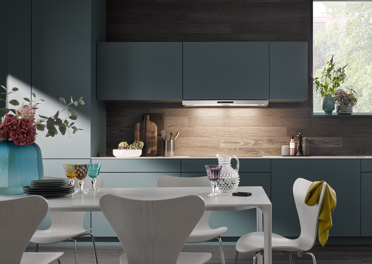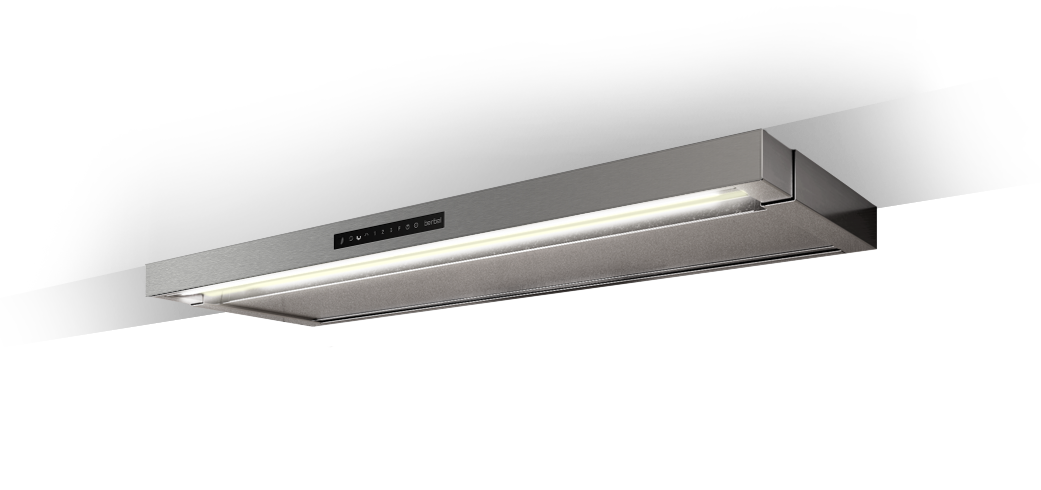 Der Wraseneinzug kombiniert mit einem ausziehbaren Wrasenschirm garantieren höchste Effizienz bei der Luftreinigung. Blendfreie LEDs für eine perfekte Kochfeldausleuchtung und die Vorbereitung für den energiesparenden EcoSwitch-Betrieb sind nur einige, der durchdachten Details dieser Flachschirmhaube. Dank der kompakten Bauart bleibt im Oberschrank viel Platz, zum Beispiel für ein Gewürzregal.