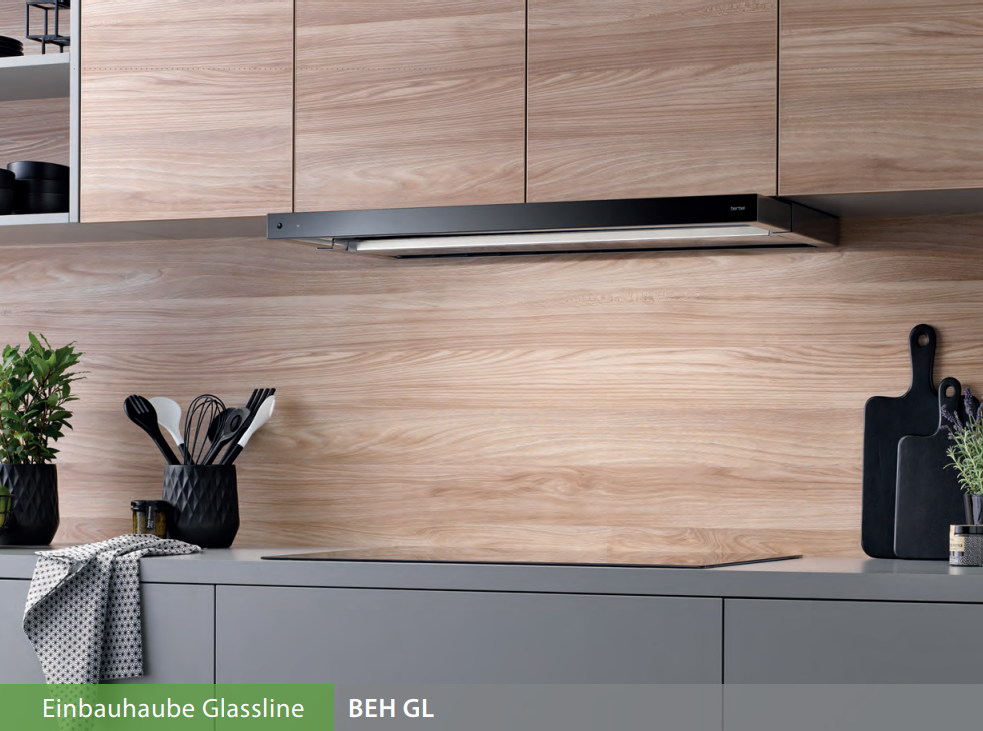 Die Dunstabzugshaube Glassline wertet mit der zeitlosen Blende aus bruchsicherem Glas jede Küche auf. Ob schwarz oder weiß, das Glasdekor mit dem dahinter verborgenen Bedienelement macht immer eine gute Figur. Das ist Küchentechnik mit Charme! Die besonders leise Einbauhaube Glassline funktioniert auf Wunsch im Abluftbetrieb ebenso wie im Umluftmodus die EcoSwitch-Steuerung lässt Gourmetköchen Raum für absolute Flexibilität. Die perfekte Erfassung von Koch und Bratdünsten gelingt dank BackFlow-Technologie über die gesamte Kochfeldtiefe.