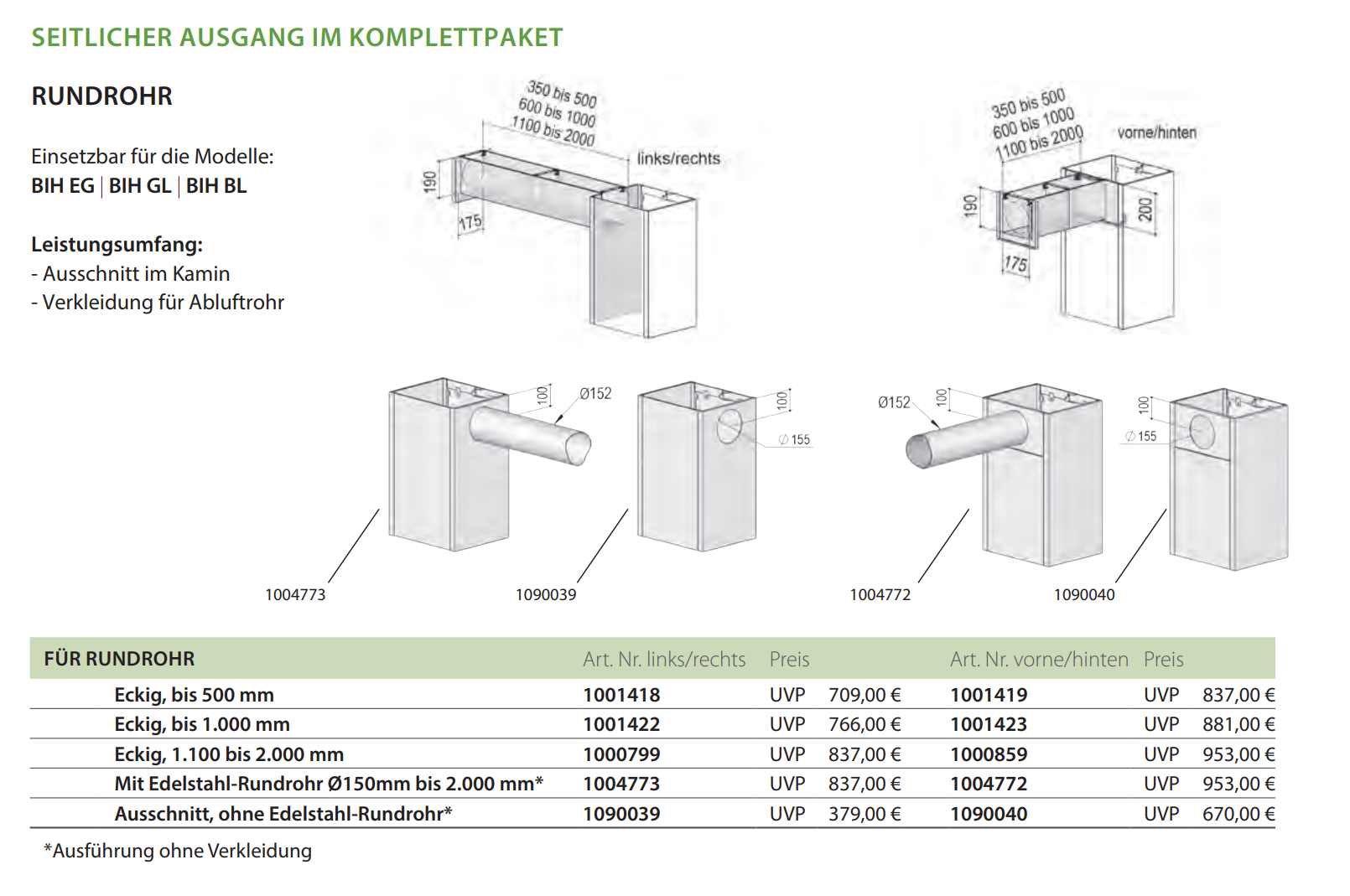 Downloads zu "berbel seitlicher Ausgang - Rundrohr links/rechts mit Edelstahl-Rundrohr Ø150mm"