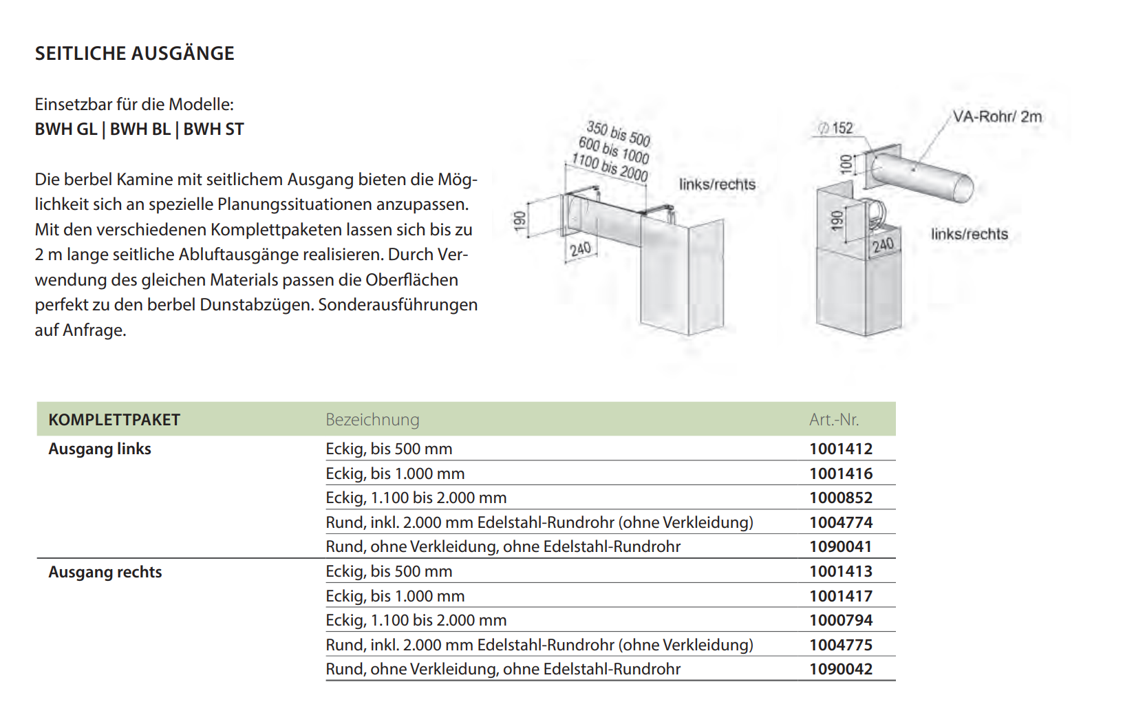 Downloads zu "berbel seitlicher Ausgang - links, Ausführung im Edelstahl-Rundrohr Ø150mm"