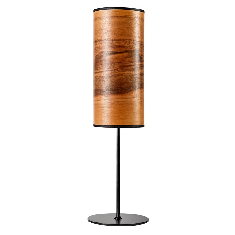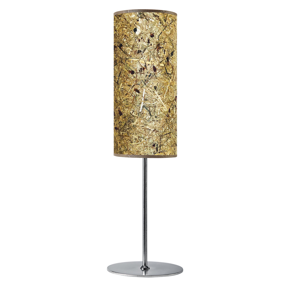 Oben und unten farblich abgestimmte textile Einfassung. - Lampenfuß in Schwarz-Matt oder Edelstahl.