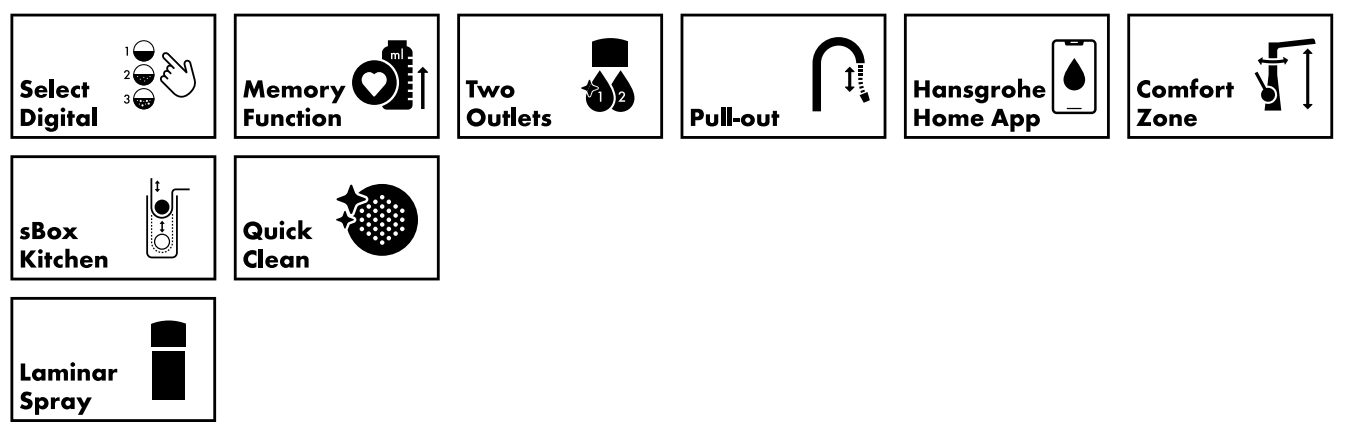 Der Aqittura Küchenmischer überzeugt mit den typischen Stärken von hansgrohe: langlebige Produktqualität und viele praktische Komfortfunktionen, die den Küchenalltag leichter machen. Die Schlauchbox (hansgrohe sBox) ermöglicht den leisen Auszug des Auslaufs auf bis zu 76 cm! Ein mehrstufiger Schwenkbereich (60°, 110° oder 150°) passt zu Einzel- und Doppelspülen. Und das hansgrohe Keramikmischsystem bietet eine leichtgängige Wassersteuerung auf Dauer.