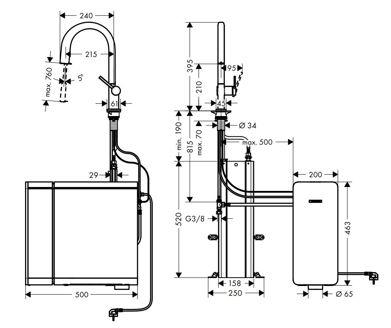 - sBox für eine leise, leichtgängige und geschützte Schlauchführung im Unterschrank