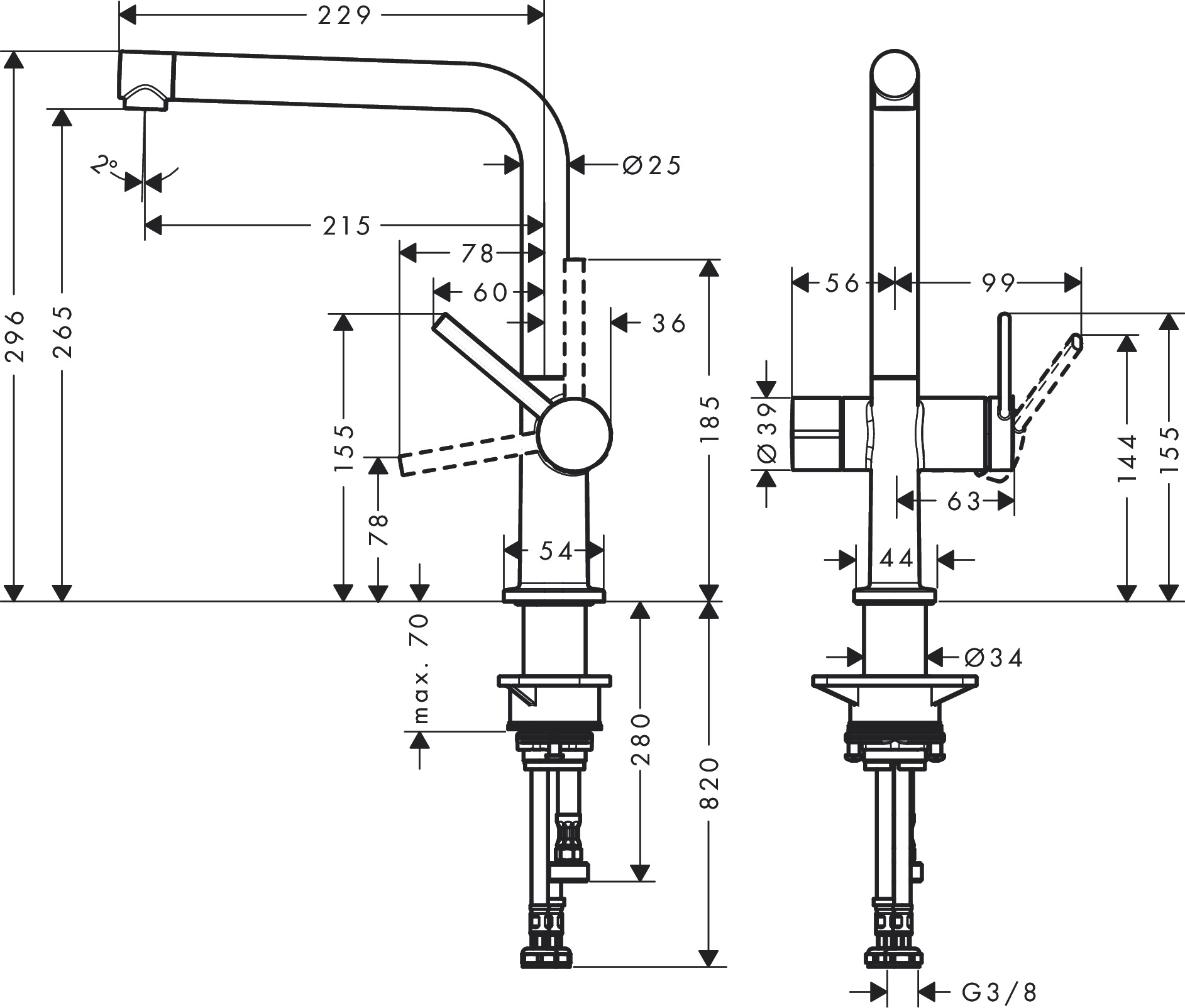 Merkmale: chrom, edelstahlfinish oder matt schwarz ComfortZone 270 L-Auslauf Schwenkbereich einstellbar in 4 Stufen auf 60°, 110°, 150° oder 360° Laminarstrahl maximale Durchflussmenge bei 3 bar: 8,4 l/min Keramikmischsystem Temperaturbegrenzung einstellbar für Durchlauferhitzer geeignet Hahnlochbohrung mit 35 mm erforderlich Beschreibung: Elegantes Design: mit ihrer minimalistischen Silhouette und dem L-förmigen Auslauf passt die Armatur perfekt unter Hängeschränke Mehr Bewegungsfreiheit: 265 mm Abstand zwischen Auslauf und Spülbecken sowie in 4 Stufen einstellbarer Schwenkauslauf (60°, 110°, 150° oder 360°) Volle Leistung: mit bis zu 8 l/min. werden auch große Töpfe schnell befüllt Besonders langlebig: ausgestattet mit hochwertigem, leichtgängigem Keramikmischsystem von hansgrohe Glänzender Auftritt: Die brillante, leicht zu reinigende Chromoberfläche überzeugt mit dauerhaftem Glanz Leicht zu reinigen: Kalk lässt sich mühelos durch Abwischen über den Silikoneinsatz am Auslauf entfernen (QuickClean) Für Durchlauferhitzer geeignet: Diese Armatur ist vielseitig einsetzbar Einfache Installation: Flexible Schläuche (G ?) verbinden die Armatur mit den Wasseranschlüssen. Hahnlochbohrung von 35 mm erforderlich Lieferumfang: Einhebel-Küchenmischer, Anschlussschläuche, Schaftbefestigung, Montageanleitung In allen Bestandteilen sind Premium-Materialien verbaut - für mehr Sicherheit und Nachhaltigkeit im Haushalt 5 Jahre freiwillige Herstellergarantie auf ein Produkt, das nach höchsten Qualitätsstandards gefertigt wurde hansgrohe seit 1901 - die Premium-Marke für zuverlässige Bad- und Küchenprodukte