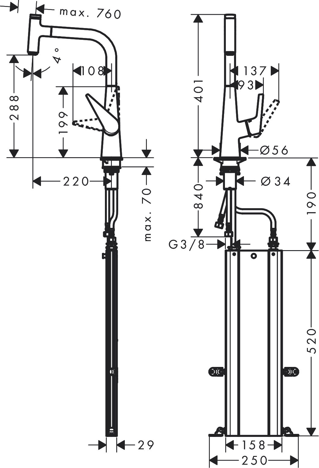 - Mehr Bewegungsfreiheit: Die Armatur besitzt einen besonders hohen Auslauf (ComfortZone 300). In 2 Stufen einstellbarer Schwenkbereich (110° oder 150°)