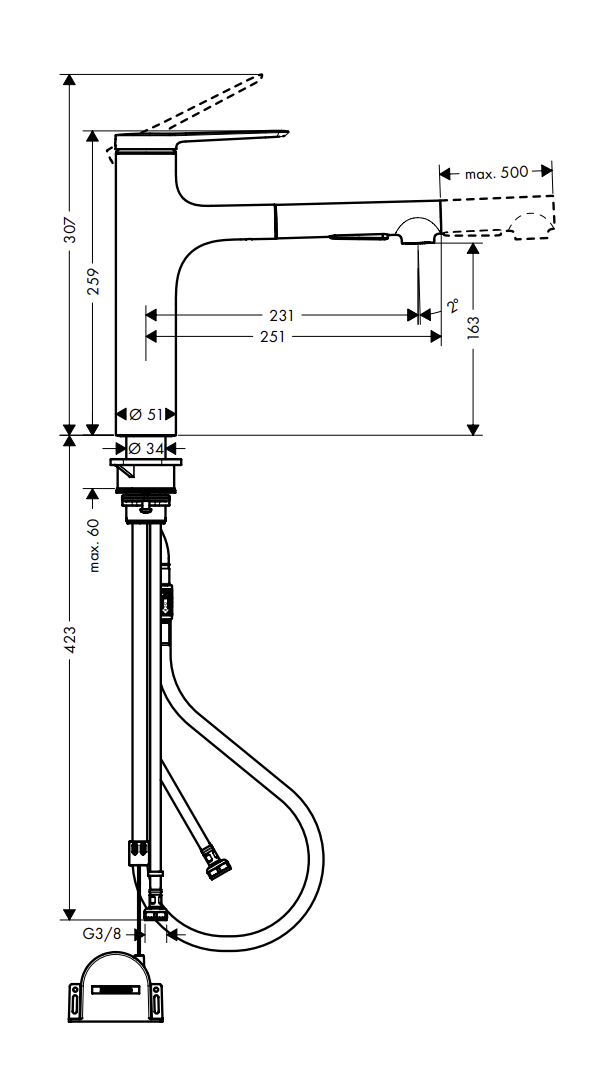 Dank der sBox lite lässt sich der 0,5 m lange Auslauf leichtgängig und sicher ausziehen. Das langlebige Keramikmischsystem stellt Wassermenge und -temperatur zuverlässig ein. Es wird wie der Mischer selbst von hansgrohe in Deutschland gefertigt.