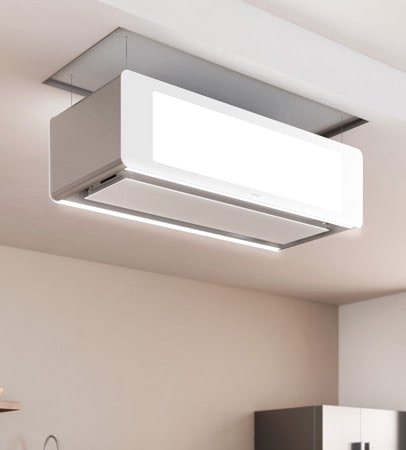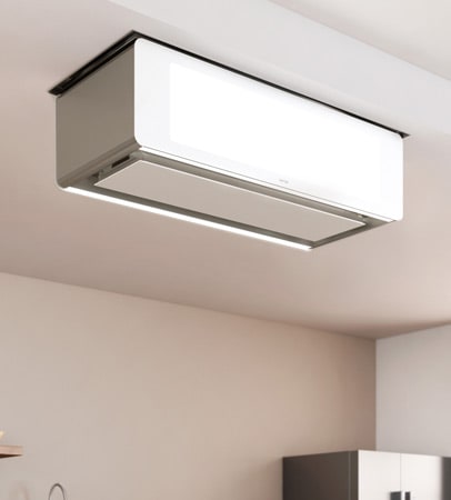 - Deckenanschluss mit JetStream-Technologie (rohrlose Abluft) und Teilversenkbarkeit