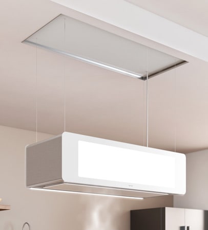 - Deckenanschluss mit Teil- oder Vollversenkbarkeit der Dunstabzugshaube in der Decke