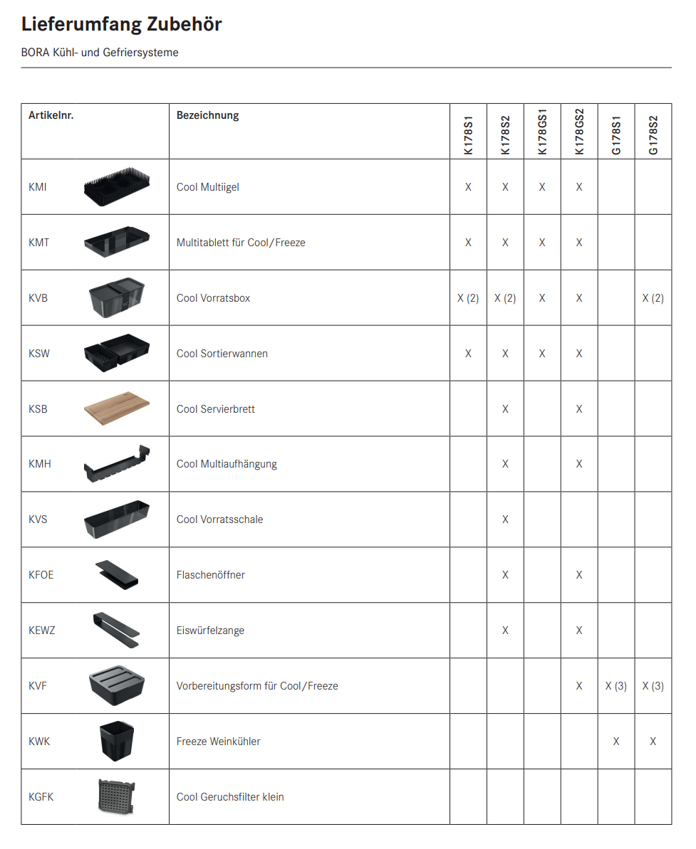Freeze Ausstattungspaket Better Gefrierschrank G178S1 Freeze Ausstattungspaket Best Gefrierschrank G178S2 Weinkühler KWK Multitablett KMT Eiswürfelzange KEWZ Vorratsbox KVB Vorbereitungsform KVF