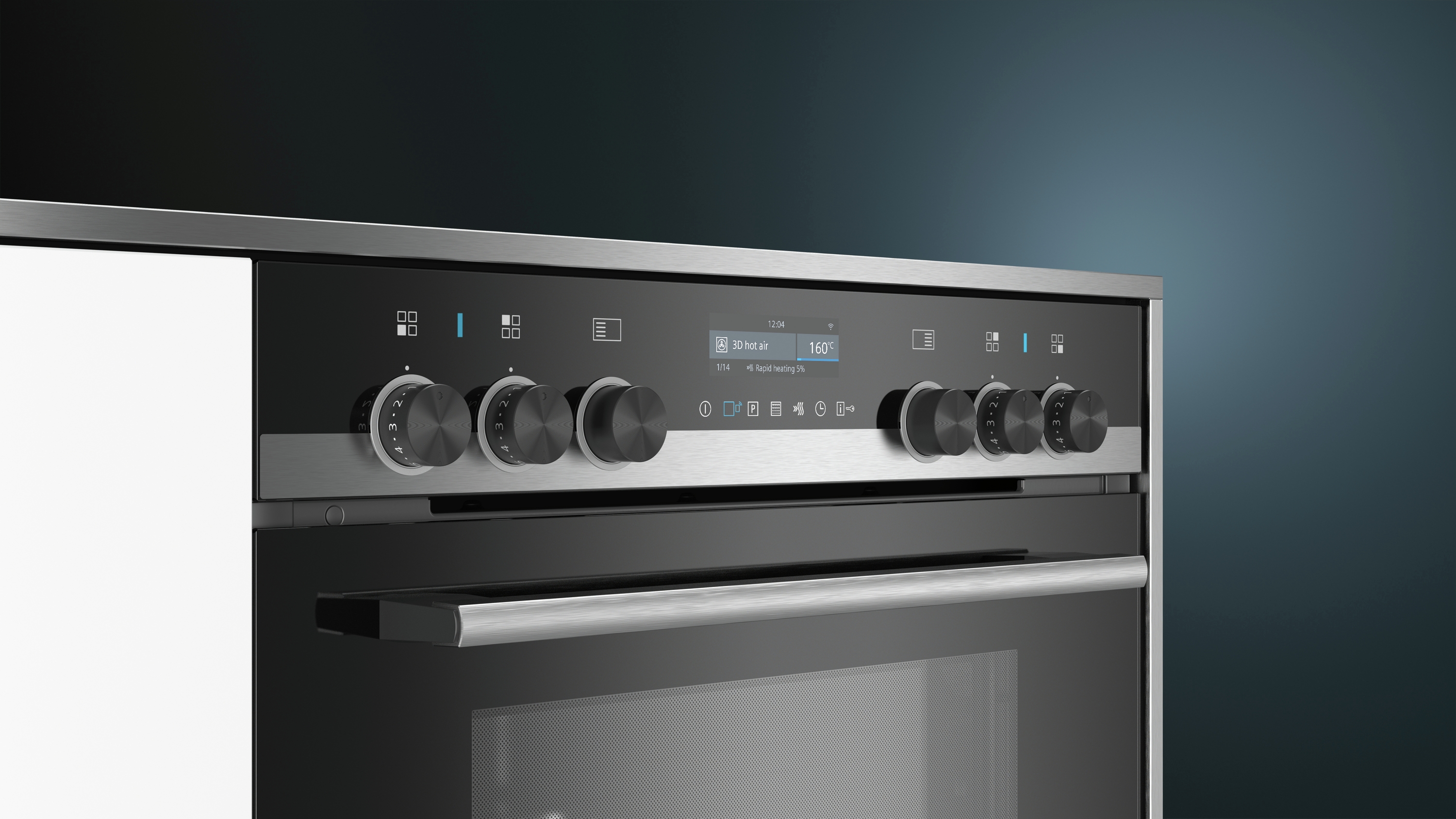 - 3D Heißluft plus, Ober-/Unterhitze, Umluft-Grill-System, Großflächengrill, Kleinflächengrill, Pizzastufe, coolStart, separate Unterhitze, Intensivhitze, Sanftgaren, Vorwärmen, Warmhalten, Heißluft sanft