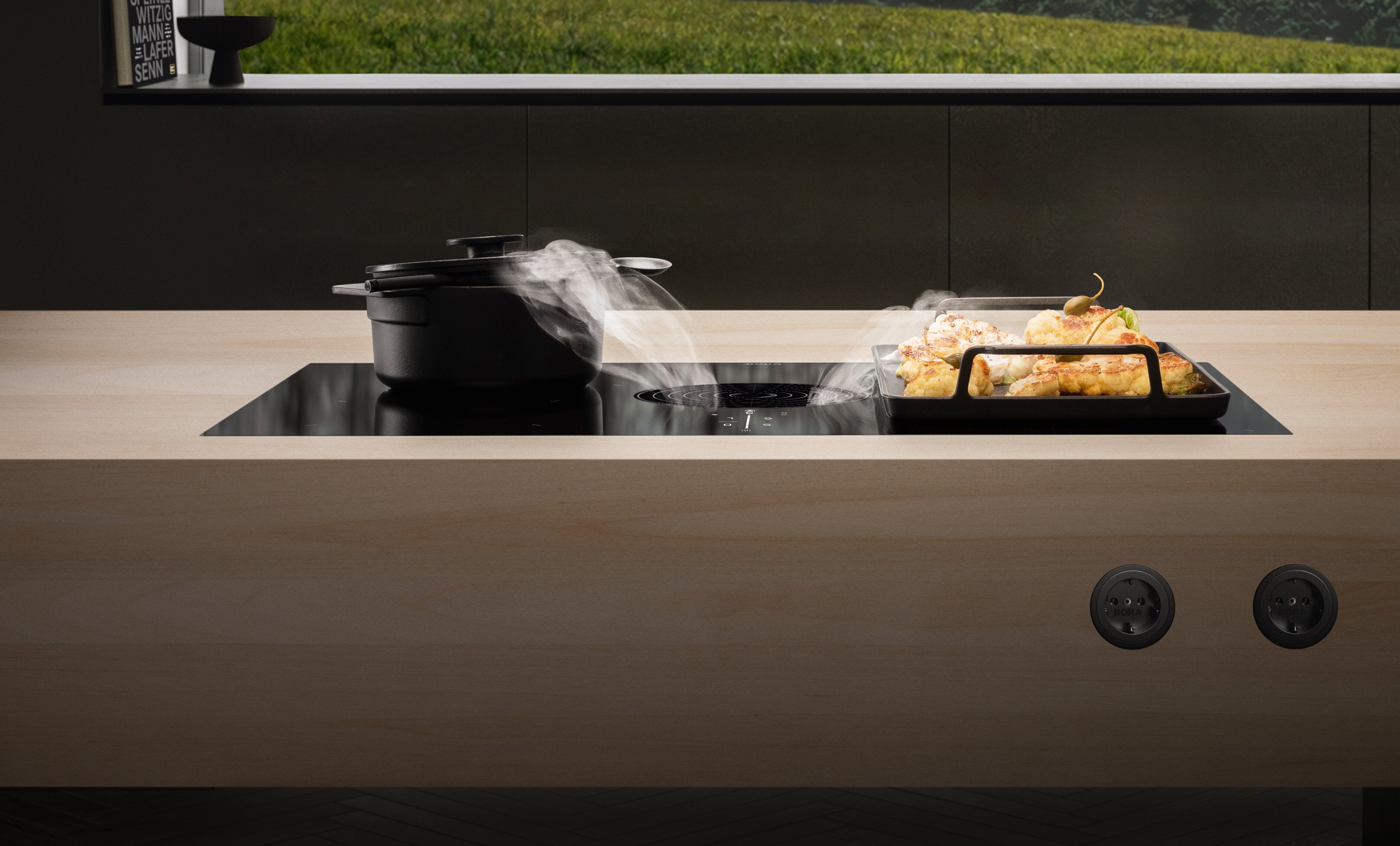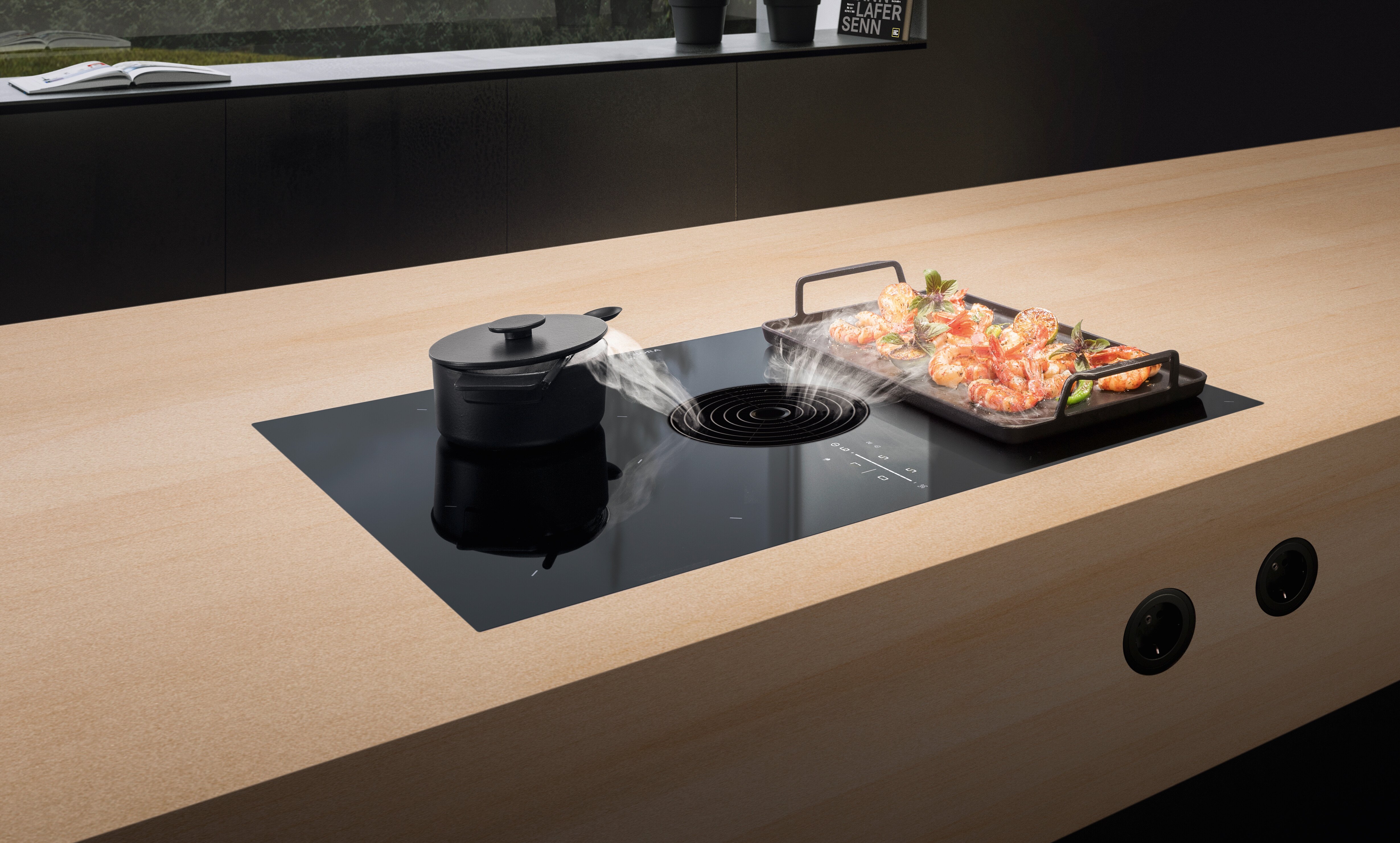 Flächeninduktions-/Induktions-Kochfeld mit integriertem Kochfeldabzug Umluft PURMU Abluft PURMA