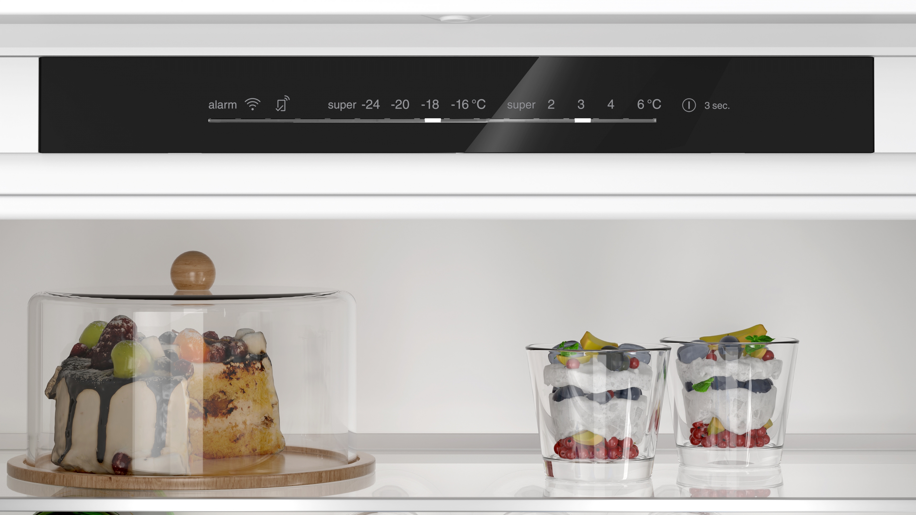 superCooling: Senkt die Temperatur für eine bestimmte Zeit, um frische Lebensmittel schnell herunterzukühlen.