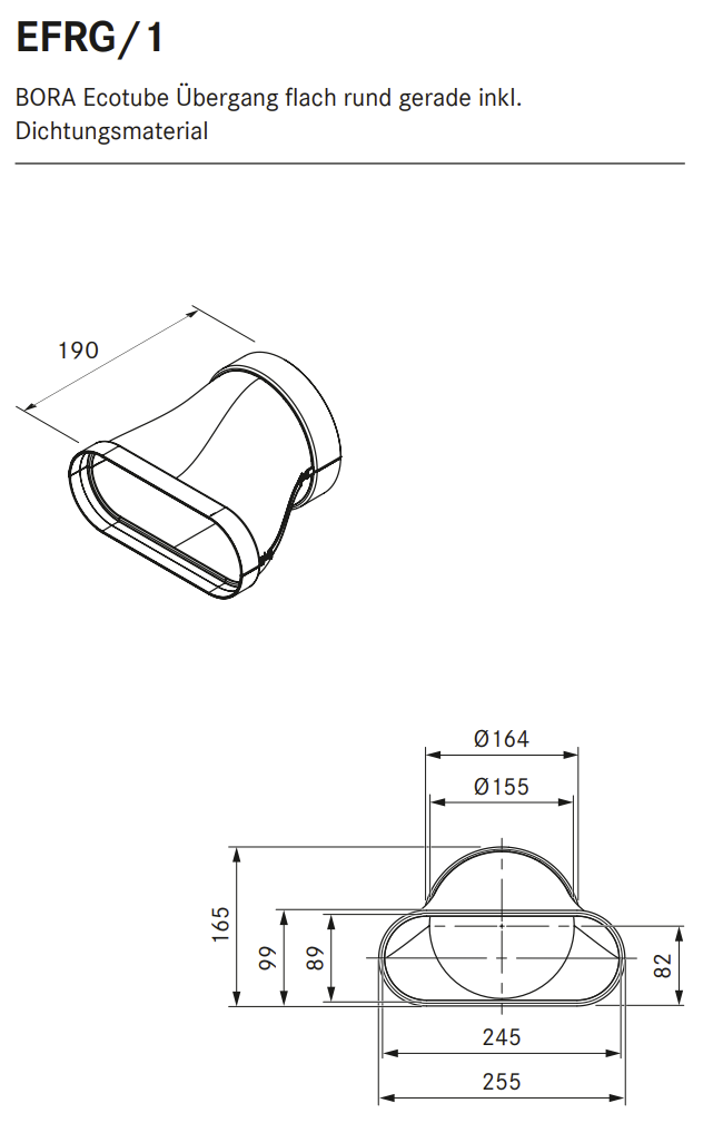 Produktinformationen "BORA Ecotube Übergang flach rund gerade inkl. Dichtungsmaterial (1Stk.)"
