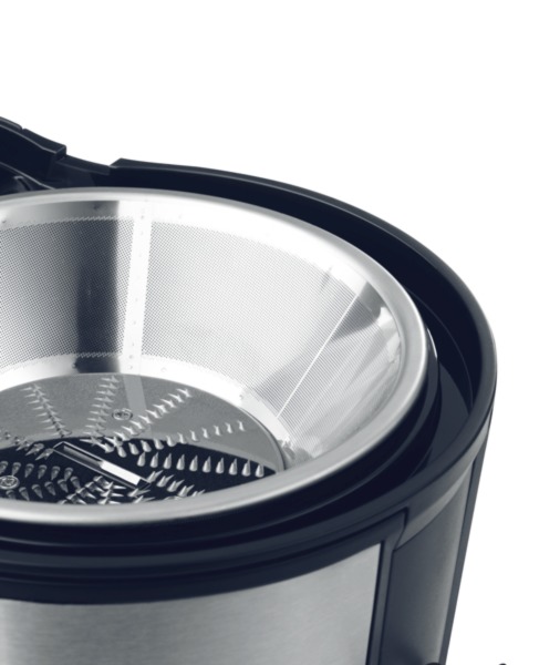 - Saftauslauf und Gerätegehäuse aus Edelstahl für lange Lebensdauer und hochwertige Optik