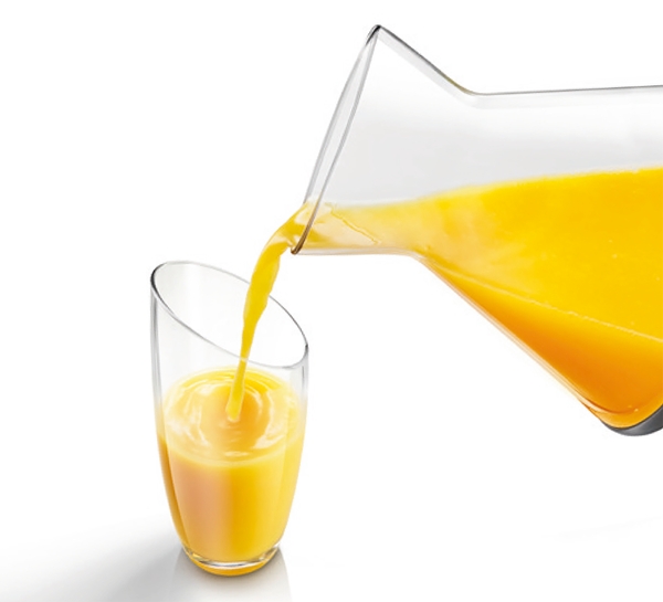 Praktische 2-in-1 Zitruspresse: Nach dem Pressen können Sie den Saft sofort in der eleganten Glaskaraffe servieren.