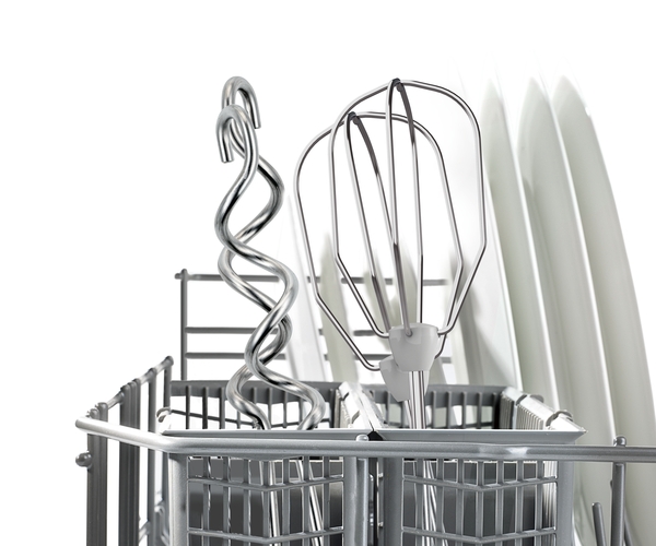 - Gerät und Zubehöre sind leicht zu reinigen. Zubehöre - Besen und Knethaken - sind spülmaschinengeeignet.