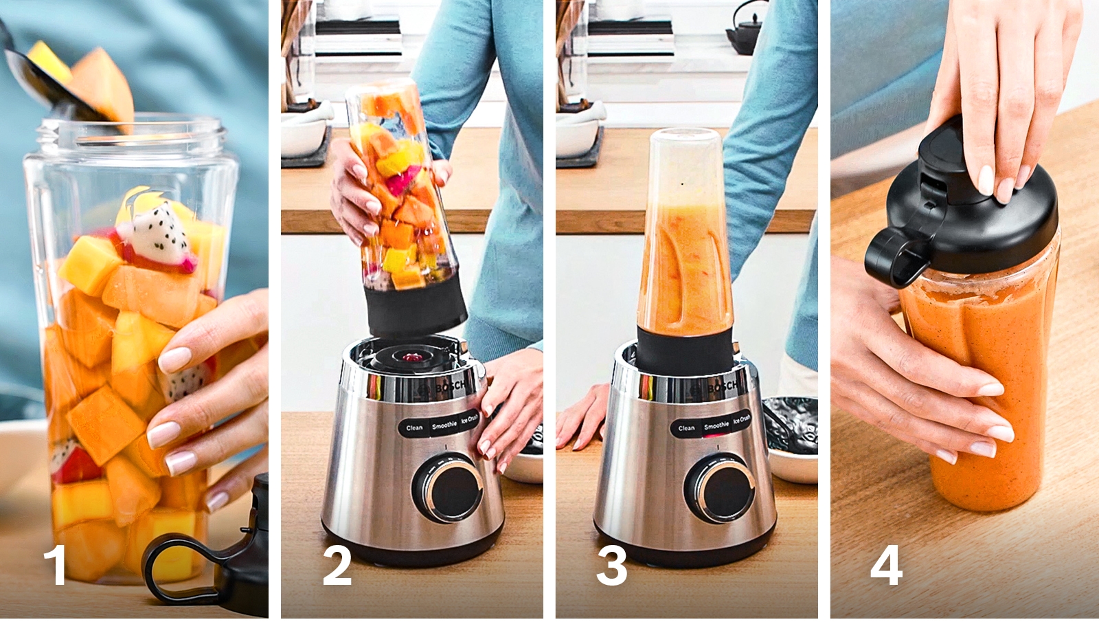 - Direkt Mixen in der ToGo-Flasche: kein Umfüllen. Liegt gut in der Hand. Auslaufsicherer Deckel.