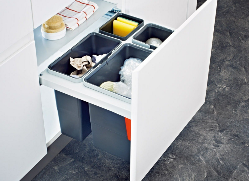 - Abfalltrennung 3-fach, inkl. Behälter 1 x 8 L, 1 x 12 L, 1 x 18 L plus Sammelschale und 1 Deckel für Behälter 8 L