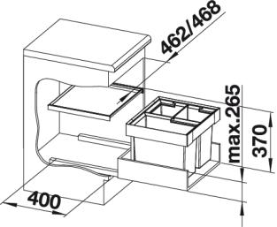 - Einbauhöhe 370 mm oberhalb Schubkastenboden, Einbautiefe 400 mm.